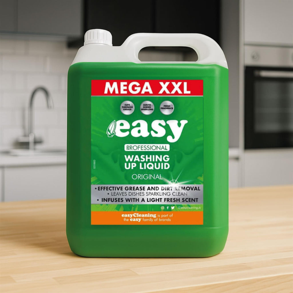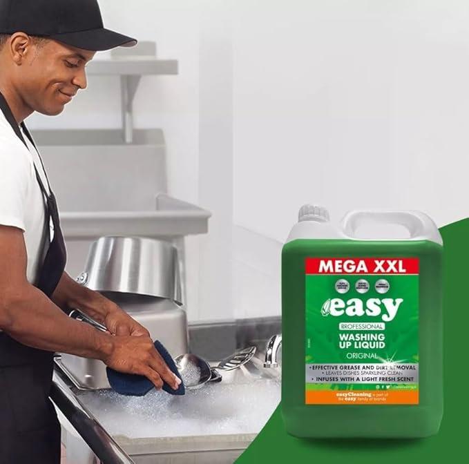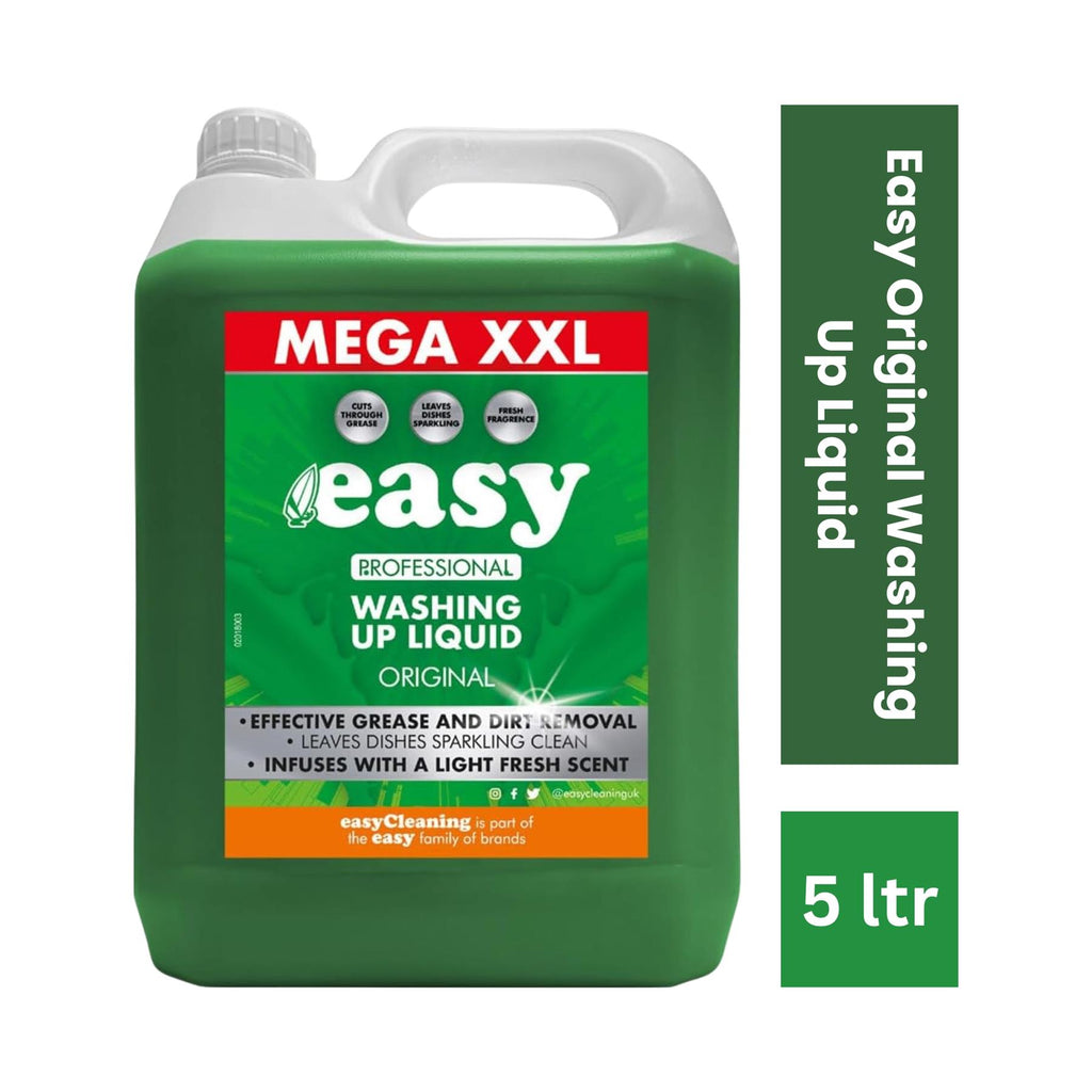 Easy Original Washing Up Liquid is a powerful and effective dishwashing solution designed to tackle tough grease and grime with ease. Its long-lasting suds and fresh, clean scent make it perfect for both home and commercial use. Ideal for kitchens, catering, and cleaning tasks that need serious performance in bulk size.