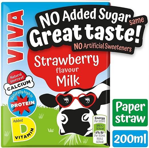 Experience the fruity sweetness of Viva Strawberry Flavoured Milk, a creamy and refreshing drink that kids love and grown-ups enjoy just as much. Each 200ml carton is enriched with Calcium and Vitamin D, helping support healthy bones while delivering a tasty treat any time of the day.